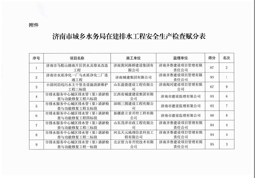 在本次安全生產(chǎn)檢查中,由齊魯一分公司參與管理的水質(zhì)凈化一二廠連通工程、馬鞍山路南片區(qū)供水與排水改造等工程包攬前四名,取得優(yōu)異成績(jī),獲得濟(jì)南市城鄉(xiāng)水務(wù)局及市排水中心領(lǐng)導(dǎo)的高度肯定及通報(bào)表彰。