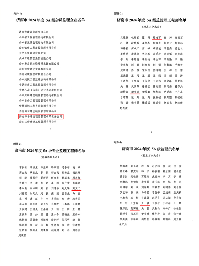 近日,濟南市建設監(jiān)理和咨詢協(xié)會發(fā)布《關于公布 2024 年度監(jiān)理企業(yè)和從業(yè)人員 5A 級考核評價名單的通知》,我司憑借專業(yè)的技術實力、規(guī)范的管理水平與卓越的服務品質,成功獲評“濟南市 2024 年度 5A 級會員監(jiān)理企業(yè)”;同時,公司多名員工在個人評選中脫穎而出,榮獲“5A 級監(jiān)理從業(yè)人員”榮譽!